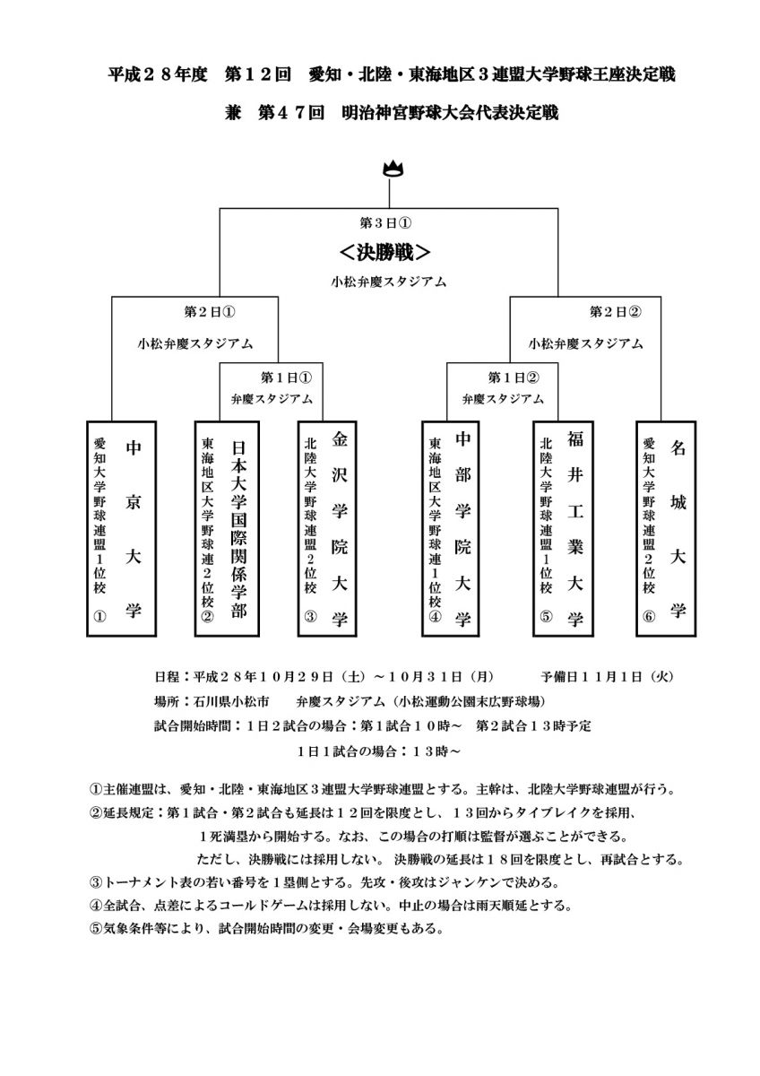 平成28年度 第12回愛知・北陸・東海地区 3連盟大学野球王座決定戦
