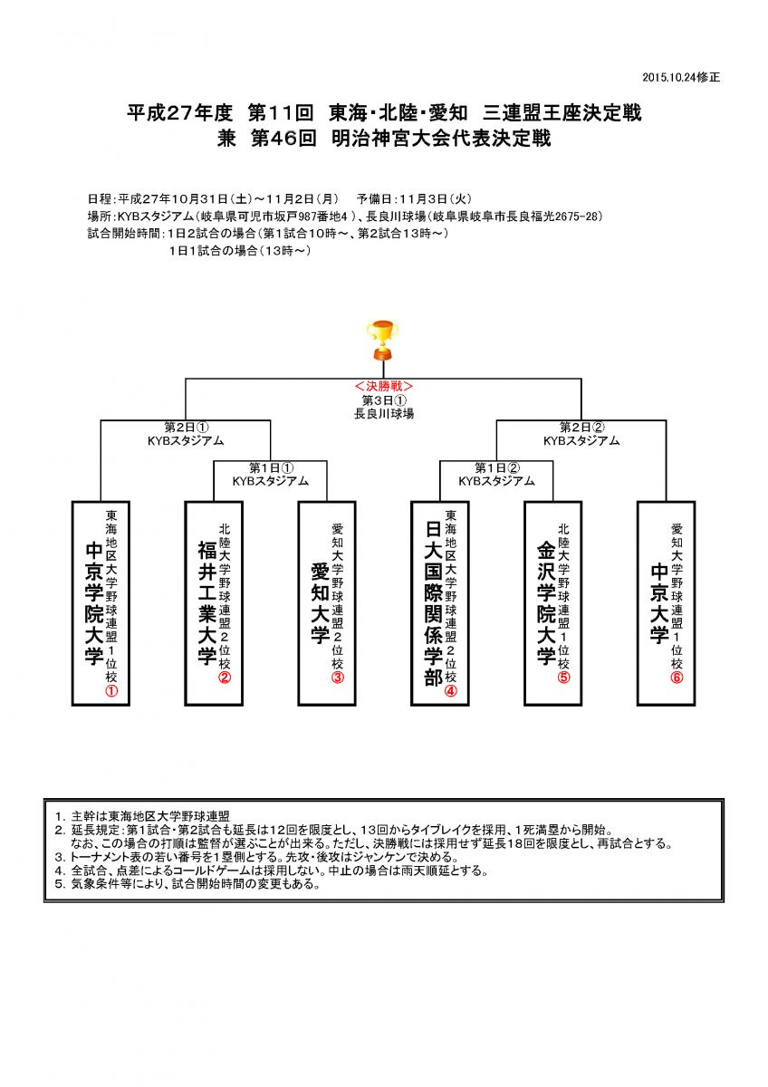 第11回東海・北陸・愛知三連盟王座決定戦(兼 第46回明治神宮野球大会代表決定戦)に関しまして、